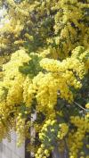 遠くから見てもすぐわかるほど真っ黄色なフサアカシアのお花(たぶんフサアカシアで間違いないと思いますが・・・)です。
