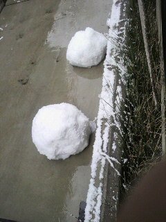 朝目覚めたら、雪が降っていたそうです。雪だるまを発見してパチリ!!でも、よく見ると頭がコロッと。かわいそうなことになってしまっているみたいです。