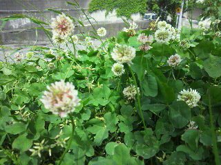 たくさんのクローバーとシロツメクサです!緑と白のコントラストがとっても綺麗です。クローバーを見ると四つ葉のクローバー探しを、シロツメクサを見るとつなげて冠をつくったり、長さの競争をして、これいったい何に使うのというくらい長くつなげて遊んだ子供のころを思い出します。