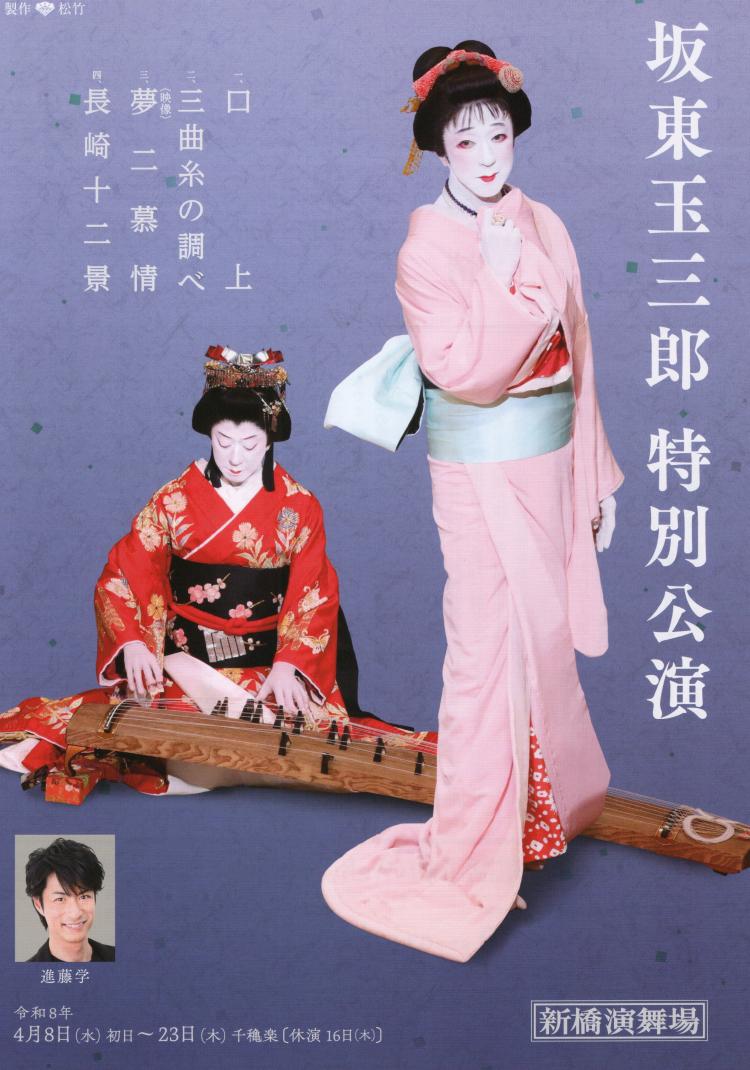 2026.03.27 13:51 白のいろいろ 新橋演舞場のポスターとチラシが届きました!! 来月の新橋演舞場の公演は、坂東玉三郎特別公演です。 口上から始まり、三曲糸の調べ、映像にて夢二慕情、長崎十二景と豪華なラインナップとなっています。 気候が良くなってくる4月に観劇に出かけてみては如何でしょう。 by kyoko 白のいろいろ