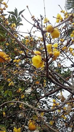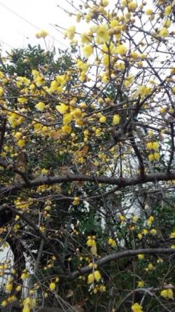 寒い中、完全防寒でお出掛けしたプーさん店長さんとふわふわ毛皮がひんやりしちゃったりきちゃん、ぎんちゃんのお散歩から届いた写真は“蝋梅”です。きれいな黄色が、どんよりお空を明るくしてくれます。この辺りは蝋梅のいい香りがしていたそうですよ。
