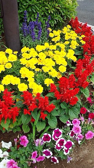 Pooh walk pictures of the day "Blue salvia,•Marigold,Salvia,Petunia"