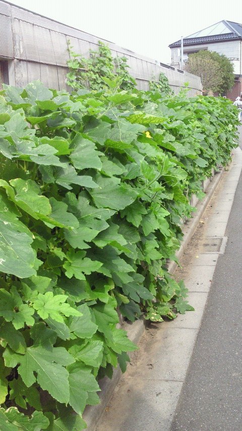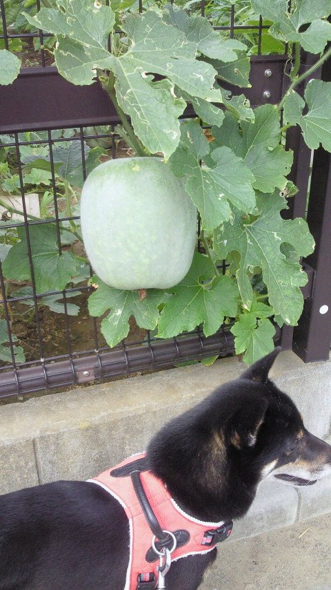 お散歩途中にステンレスの柵につるもの系のお野菜と思われる植物がびっちりとはびこっていました!!二匹のわんこたちに「これなんだろうね~?」と話しかけながら歩いていたら・・・