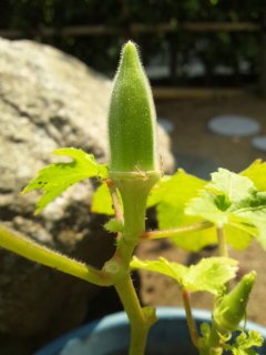 そんなに大きくない鉢にオクラが植えてあり一つだけ成長していました。上にまっすぐ伸びているこのオクラがなんともほのぼのしている感じで撮らずにはいられませんでした。
