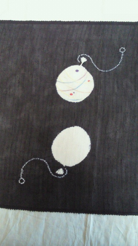 この帯も、絽紬の生地に絞りとアップリケで、夏を表現しています。