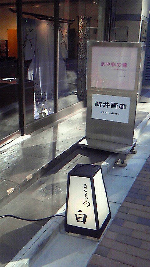 新井画廊の看板よりシロタ画廊さんの看板のほうが目に入りやすいのですが、足元に白~はく~の行燈が出ていますので、それを目印にしてくださいね。詳細をご覧になるにはこちら↓