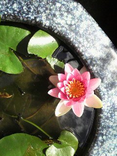 昨日に引き続き、あれ?っと思われた方、ブログチェックありがとうございます!!5月29日に登場した、火鉢!?に浮かぶ葉っぱ君にお花が咲きました。前のときは睡蓮か蓮か、悩んでいたのですが、この子は睡蓮君だったようです。昨日に引き続きスッキリ!!です。