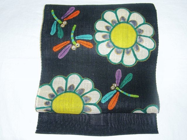 ざっくりした紬生地にPOPなお花ととんぼさんがかわいい夏名古屋帯をご紹介します!