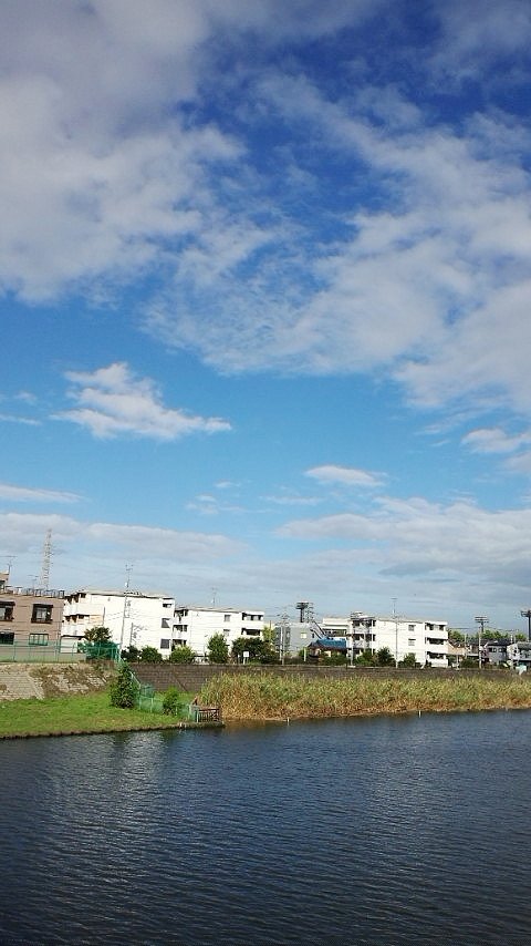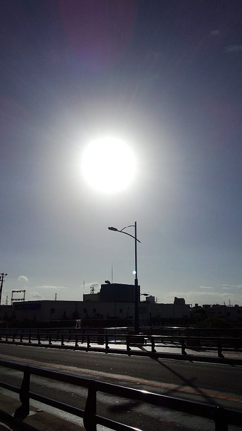 今日届いたプーさんぽの写真は、きらきらな太陽さん。これって、撮るとき目は大丈夫だったのでしょうか?ちょっと気になるそんな1枚と、少し秋らしくなってきた!?雲が浮かぶ空と河です。