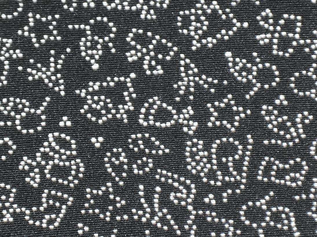 今日ご紹介するのは、黒地のクリスマス柄の江戸小紋です。遠目に見ると、江戸小紋なので色々な形に見える点々がいっぱいな感じですが、よく見ると、ツリー、ベル、星、雪だるま、ろうそく、くつしたなどなど、クリスマスを感じて頂ける柄がいっぱいです!!