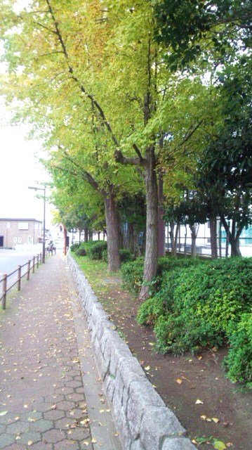今日のプーさんぽから届いた写真は、まだ雨が降り出す前のお散歩でパチリした写真だそうです。この写真を見ると、冬の足音の前に、まだ秋がやってきてない感じですね。イチョウ並木がうっすら黄色に色づき始めてきたようです。でもまだ緑の葉の方が多そうですね。