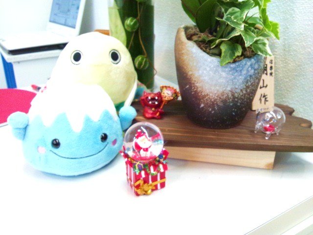 街の中の飾り、流れてくる音楽、すべてがクリスマスの雰囲気になってきましたね。という事で、リースに続いてかわいいサンタさんが“きもの白”の仲間になりました。このスノードームの中のサンタさんは、たくさんのプレゼントに囲まれているんですよ。
