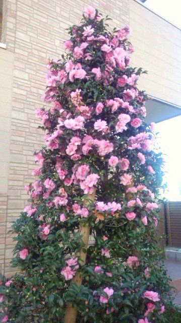 そんな今日のプーさんぽの写真はクリスマスツリーのような椿ツリーです!!グリーンにピンクのお花がいっぱい咲いていてとっても可愛らしいですよね。