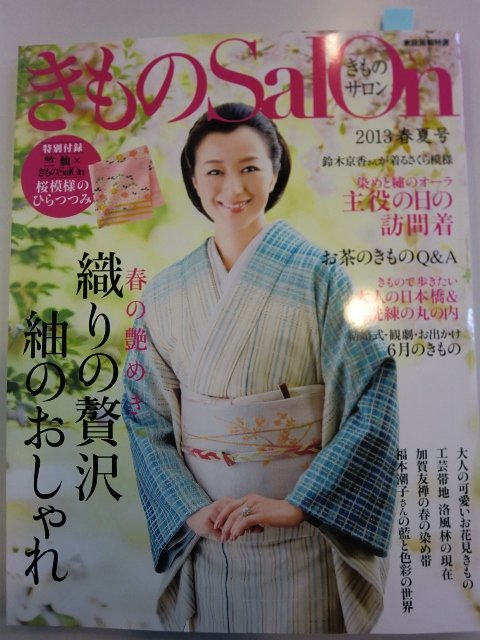鈴木京香さんが素敵なお着物姿で微笑む表紙が素敵な『きものSalon'13春夏号』に“きもの白”の着物を掲載頂きました!!