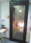 もともとの扉は、重たくて中も見えないタイプの普通の扉だったので、扉を開けるのに少し勇気がいる!?という事で、エレベーターを降りたらすぐに明るい店内を感じて頂ける扉を設置しました。