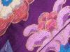 明るめな紫の地色に色々な形のお花がとても躍動的に織り出されています。緯糸に太めの糸を使っているので柄が立体的に見えますよね。