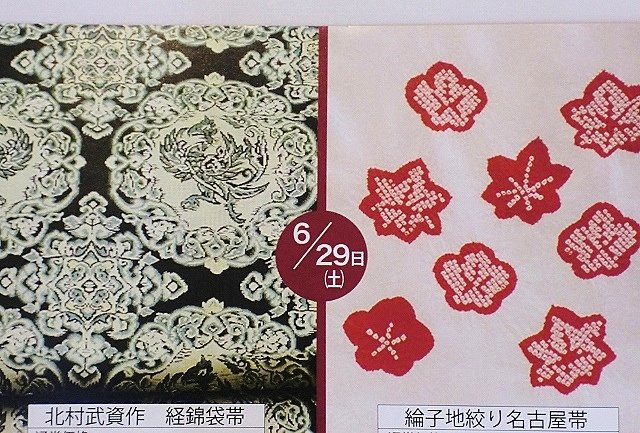 商品は北村武資作経錦袋帯と綸子地絞り名古屋帯です。