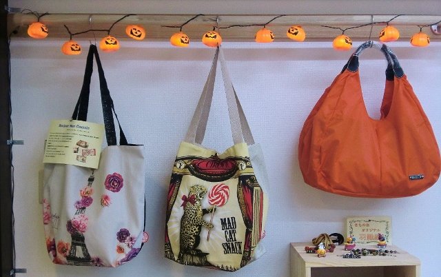 最初は、リースと、テーブルにパンプキンランタンでも飾ろうかなぁと話していたのですが、色々と見ているうちに、あれもこれも可愛くて、気が付くとお店中がハロウィン仕様になってしまいました♪