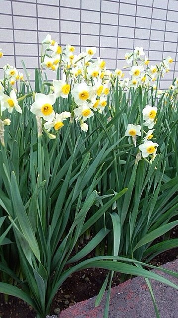 今日プーさんぽから届いた写真は、すらっと並んで咲いた綺麗な水仙です!!黄色いお花と緑色の葉のコントラストが素敵ですよね。