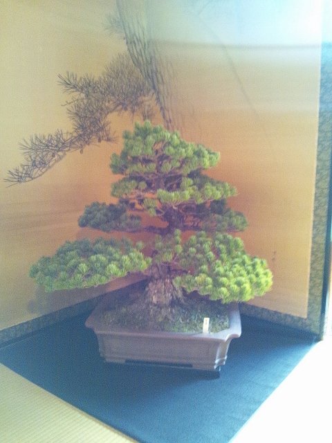 松の屏風の前に立派な松の盆栽!!とても立派な枝ぶりですよね。
