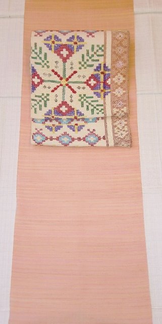 今回は、春向きにピンク色の紅花紬に合わせてみました。大島や結城に合わせて頂いても素敵です☆