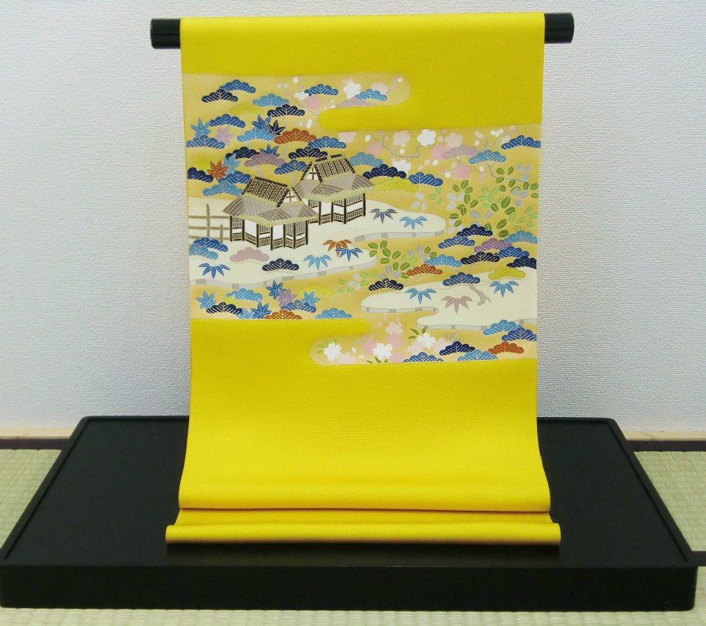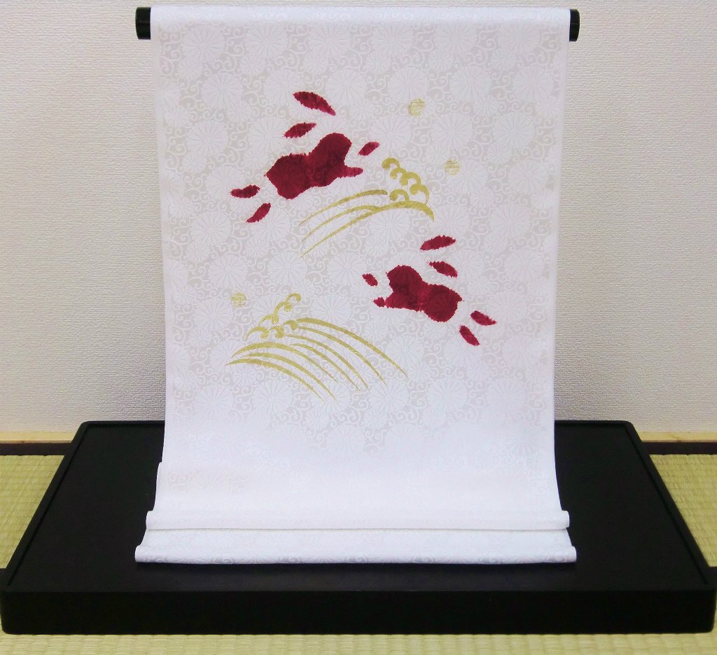 新しくアップした中から、波うさぎの絞りの名古屋帯(一枚目)と綺麗な黄色地の茶屋辻柄名古屋帯をご紹介します!