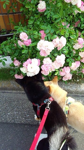 今日届いた写真は、薔薇???の様なお花です。正解はちょっとわからないのですが、りきちゃん、ぎんちゃんがくんくん匂いを嗅ぎながらチェック中です☆