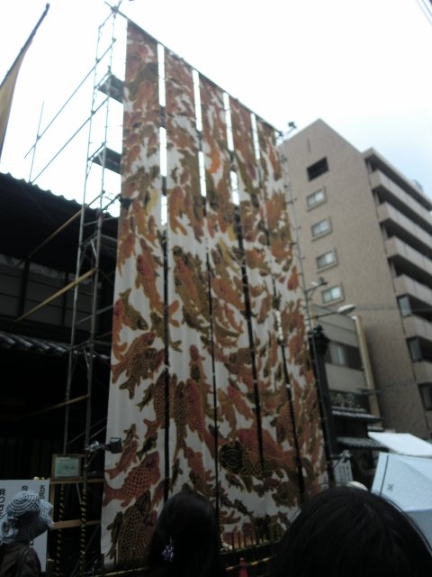 絞りの老舗『藤井絞』の二階からの見学となります。窓ガラスは全て取り外され、鉾のお囃子の人たちと同じ目線の高さでの楽しんで頂けます。