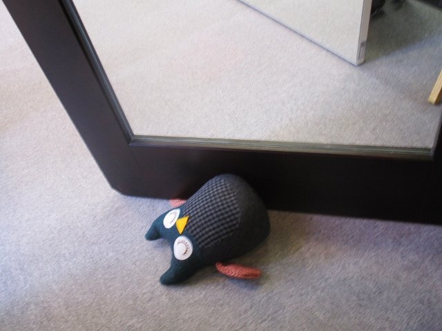 いつでも眠っているふくろうさんの本当のお仕事は、二枚目の写真の様にどしっと座って扉をおさえる事だったはずなのですが・・・。