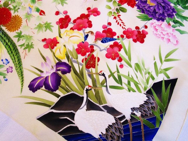 このショール用に別機(べつばた)で織られたしなやかでありながら、ハリのあるとても心地の良い生地に、一流の職人によって京友禅を施した、一点もののショールです。