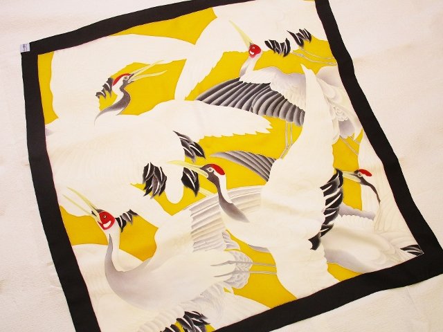 昨日ご説明した通り、別機(べつばた)で織られたしなやかでありながら、ハリのあるとても心地の良い生地に、一流の職人によって京友禅を施した、一点もののスカーフです。サイズは畳半畳ほどになります。