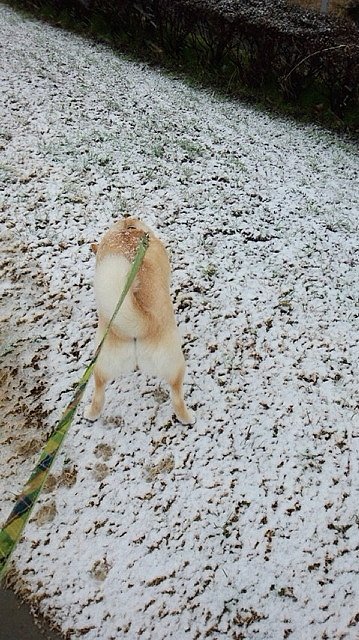 こんな寒い日でも、プーさん店長さんとりきちゃんぎんちゃんはお散歩に出かけます。童謡などではワンちゃんは雪が大好きで駆け回ると言いますが・・・りきちゃんは雪好きじゃないみたいでしょぼ~んな感じです。そして、ぎんちゃんは歌と同じく元気いっぱい雪の上を走っています!!