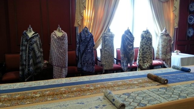 そこに、チャンチンで手描きされた素敵なバティックのショールや反物がたくさん飾られていました。やはり、プリントの物とは全く違って一つ一つに奥行きがあり素敵なものだらけでした。