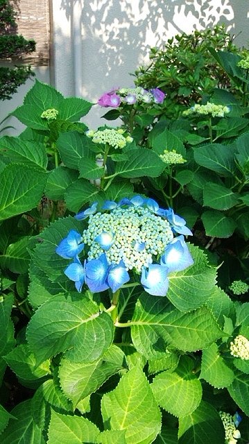 雨に濡れた姿もきれいですが、キラキラ太陽の下のガクアジサイも色が鮮やかで綺麗ですね。