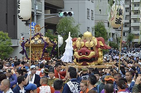 メインとなるのは13日の渡御(とぎょ)祭では「千貫宮神輿」「弁財天お歯黒獅子」に加えて築地市場内「水神社(すいじんじゃ)」の「水神社大神輿」も、一緒に巡行する築地市場移転前の最初で最後の機会です。