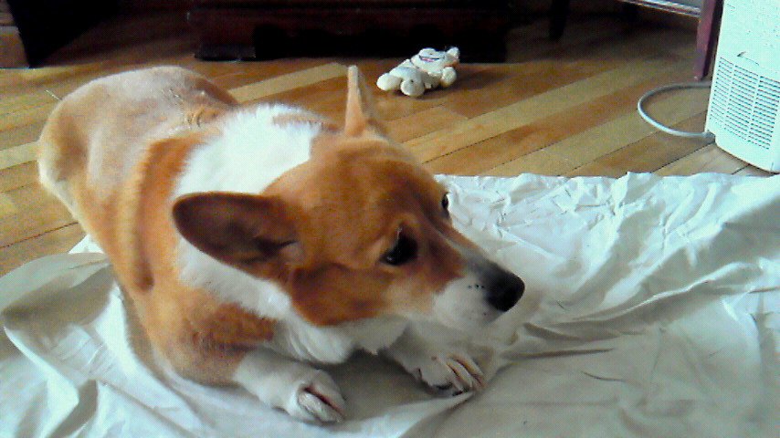 そのお宅のかわいいコーギーのきんぎょちゃんを激写させて頂きました。あんまりカメラは好きじゃないとの事で、なかなかこっちを見てもらえず、悪戦苦闘の中で、取れた写真です。15歳なので、おばあちゃん的な年齢みたいですが、お出迎えしてくれる時は、ぴょんぴょんと跳ねながら玄関まで来てくれるんですよ。そして、きれいな毛並みなので、年齢不詳な感じなんですよね。もう一枚は、ちょっと流し目で色っぽい感じです!!