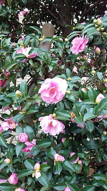 ゆっくりお散歩から届いた写真は毎年ご紹介しているこのタワー!!クリスマスツリーのようなピンクの可愛い山茶花です♪