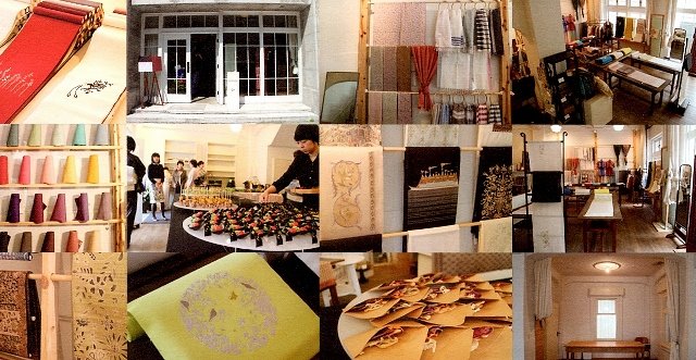 建物の雰囲気にマッチする、バティックの小紋やイカットの九寸、ナチュラルタッサー、十字刺し子に、汕頭刺繍など、見どころいっぱいです。