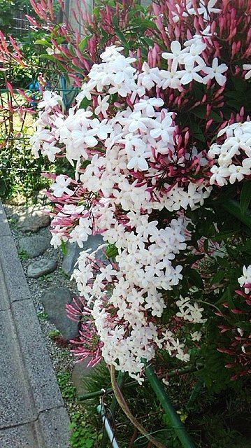 朝出かけているプーさん店長さんとりきちゃん、ぎんちゃんのお散歩も暑かったみたいですよ。そして、今日届いた写真は“羽衣ジャスミン”です。お花の咲いている辺りでは、とってもいい香りがしていたみたいですよ。
