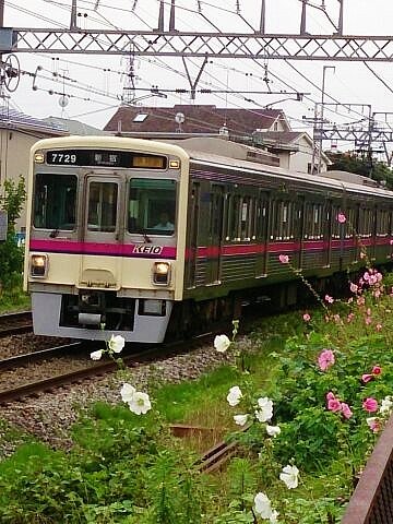 昨日の定休日に、どんよりお空を眺めながら少しテクテク。線路際の芙蓉をパチパチ撮っていたら、ガタンゴトンと電車のやってくる音がして振り返ると電車登場!!芙蓉越しの電車撮っちゃいました。はたから見ると、どう見ても撮り鉄・・・。