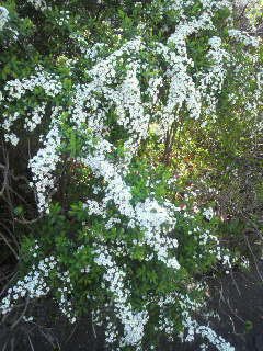 白い細かいお花が可愛い雪柳です。このお花ってバラ科なんですって。知らなかったです!!そして、春に咲くのになせ“雪”と思ったら、白い花を雪が積もったように咲いている事や花がいっぱい散ったあとの地面が雪がパラパラと積もったように見えるという見た目から付いた名前のようですよ。