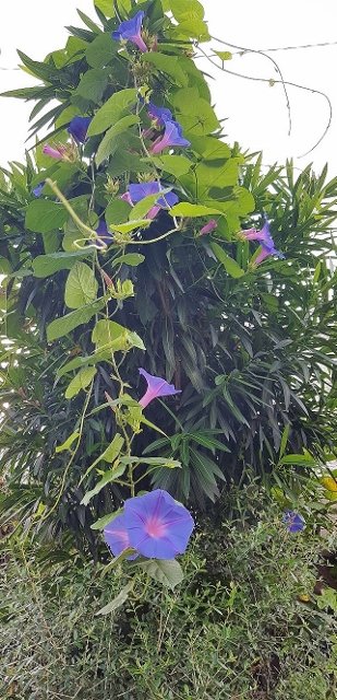 かなり高い所からつるがのびていて、吹く風にゆらゆらとゆれていた所をパチリしてきてくれました。