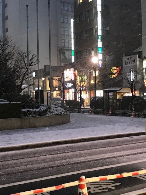 銀座もお昼過ぎたあたりから雪になり、17時の今はこんこんと降っています。そして、うっすら積もり始めました。