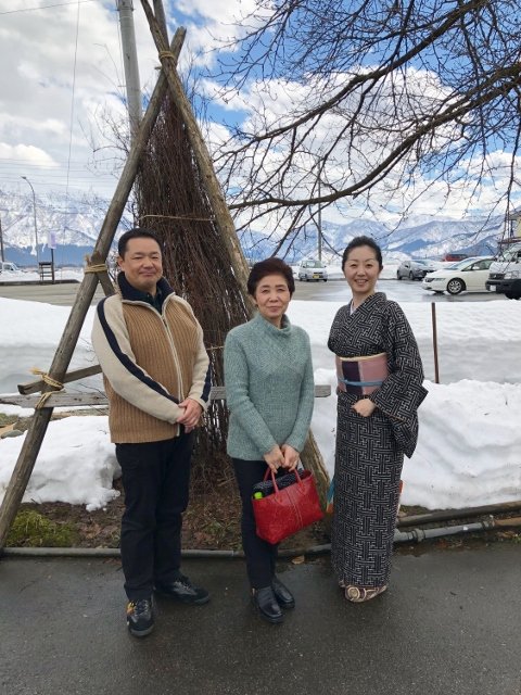 雪の上に整列した反物たち。何とも面白い光景です。バックの雪山と青空も美しかったです。ここ田んぼなんですが、私やっちゃいました・・・。膝上ぐらいまでズボッとはまる。そして助けてくれようと思って着て下さった問屋の女性も私を引っ張りながらはまる・・・。ちょっと面白かったので写真撮ってもらえばよかったなぁと。(その時はビックリしすぎて、そんな余裕はなかったですが)