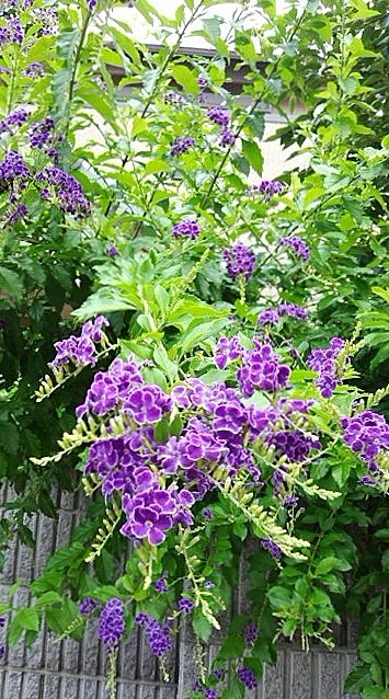 元宝塚ファンの私は〝宝塚〟とはなぜ?と思って調べてみた所、デュランタの中でも、この紫色のみがデュランタ宝塚と呼ばれているそうです。そして、タカラジェンヌのキリリっとした袴姿から名づけられたと書いてあるのですが、紫色のスミレはシンボル的なものですがタカラジェンヌの袴って紫じゃなくて緑なんですよねぇ。と思ってもう少し調べていたら、商品化して命名した方が、最初にこの花を見つけた時、香りと共にスミレをイメージしましたのでスミレならば宝塚と連想して、この名前を付けたそうです。
