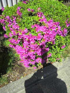 二枚目の写真を見ると、つつじの他になにか見えるのに気がつきませんか?そうです。店長さん(=プーさん)のシルエットが!!ちょっと補足してみちゃいました。