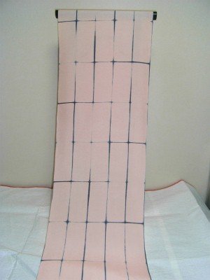 もちろん板を開けるまでは、どのようになっているかは分からず、しかもやり直しは出来ないので、職人さんの熟練した技と勘がすべてなんです。格子のラインの柔らかな感じは、板締め絞りならではです。