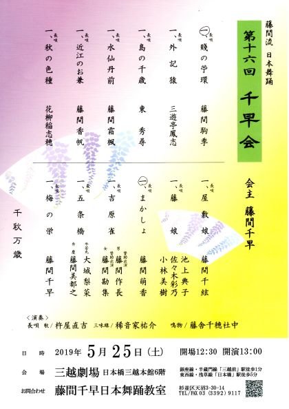 藤間流日本舞踊『第16回千早会』が開催されます。
