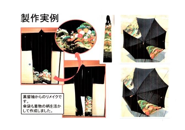 お家の箪笥に眠っている留袖、色留袖、訪問着、小紋などから、世界に一つだけの素敵な日傘をお作りいたします。