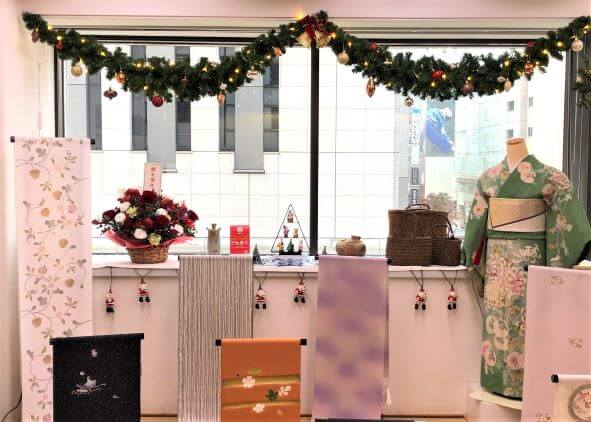 11月に入ってもまだ温かくて、冬がやってくる感じがしませんが、街中ではクリスマス飾りをちらほら見るようになりました。と言うことで〝きもの白〟でもクリスマス飾りしちゃいました!!